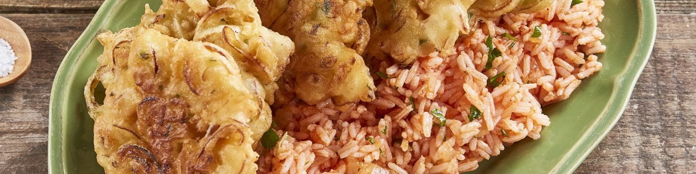 Pataniscas de alho-francês com arroz de tomate! Quer uma receita que o faça lembrar as comidas da casa da avó, mas num formato vegetariano? Experimente as Pataniscas de alho-francês com arroz de tomate. Um prato que lhe vai sempre fazer lembrar os sabores de casa. Como fazer Pataniscas de algo-francês com arroz de tomate