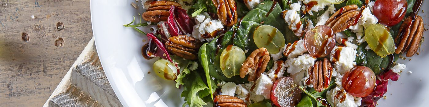 Experimente esta receita de salada! Esta receita de salada de uvas com rúcula e noz pecan vai fazer água na boca a qualquer um lá de casa! Com uvas brancas e queijo feta fica uma delícia. Bom apetite!